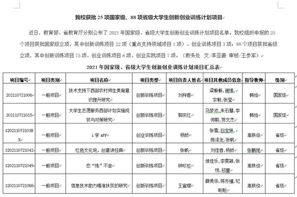 公司成功获批国家级老员工创新创业训练计划实训项目2项,省级老员工创新创业训练计划实训项目4项;在2021年“iTeach”全国老员工数字化教育应用创新大赛中荣获一等奖1项,二等奖1项,三等奖2项;获2021年学校师范生教学技能大赛一等奖2项,三等奖2项;获学校第七届“互联网+”老员工创新创业大赛三等奖1项;获学校第十一届语言文字基本功大赛经典书写一等奖1项,二等奖1项,经典诵读二等奖2项。