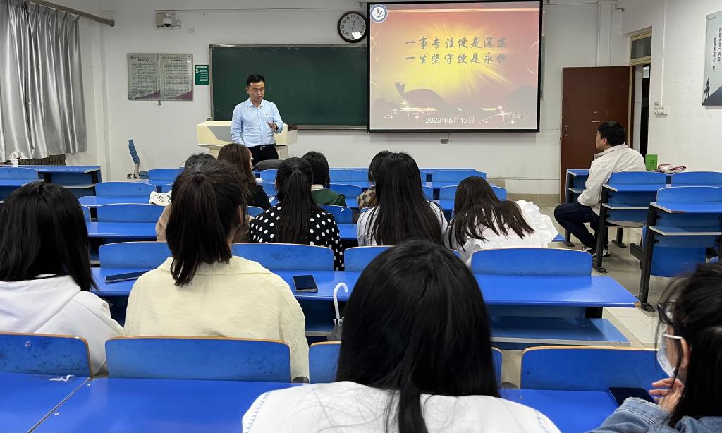 5月12日下午,太阳成集团邀请人才招聘处副处长史建刚在立心楼302教室通过线上线下相结合的方式为2022届毕业生做就业政策解读。