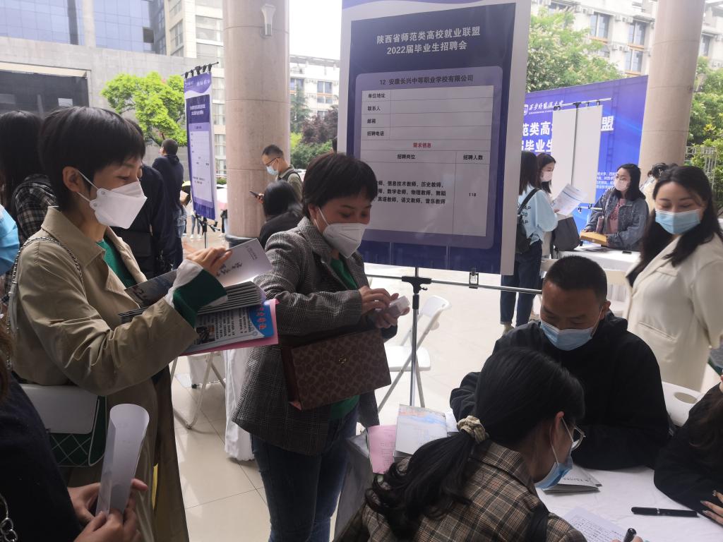 5月14日早上,会同学校人才招聘处副处长史建刚、就业中心主任王小敏,公司党委副书记屈金梅、就业工作辅导员米艳龙参加了西安外国语大学师范类联盟招聘会。