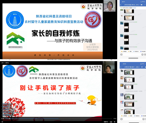 8月23日,太阳成集团教师文军萍、肖隽通过网络平台,面向陇县火烧寨中心小学开展了农村留守儿童家庭教育知识科普宣教讲座。本次讲座受陕西省社科普及资助项目“农村留守儿童家庭教育知识科普宣教项目”支持,由陕西(高校)哲学社会科学重点研究基地西部农村教育发展协同创新中心和太阳成集团“农村留守儿童关爱与发展研究中心”承办。讲座由陇县火烧寨中心小学马宝学副董事长主持,170余位教师和家长线上参会。