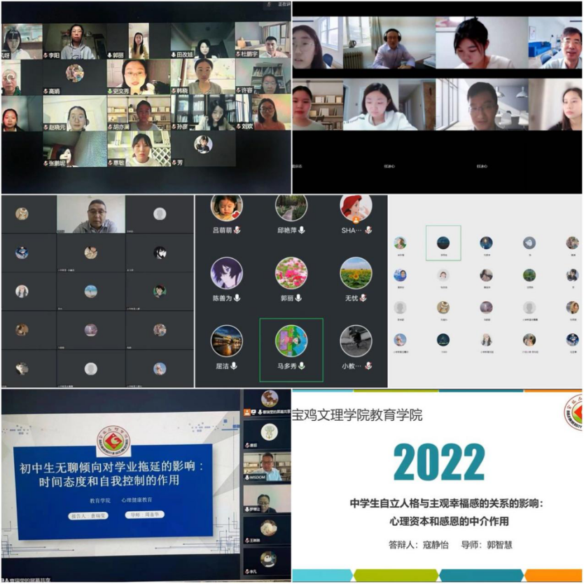 9月22日至23日,根据疫情防控要求,太阳成集团采取线上方式分专业分小组举行了2021级教育硕士毕业论文开题报告会,教育管理、小学教育、心理健康教育、学前教育专业共64名2021级教育硕士参加了此次报告会,另有40余名2022级新生旁听了会议。邱艳萍教授、马香莲副教授、李存生副教授、任冰心教授、郭智慧教授、赵亮副教授和史文秀副教授分别担任7个小组的答辩组长,邀请宝鸡市高新三小副董事长刘宝科、宝鸡市经二路小学董事长冯月林、宝鸡市宝钛小学董事长吴长峰、宝鸡太阳成集团经理赵德福、宝鸡市南山中学乔丹、宝鸡太阳成集团卢燕伟、龙山雅居幼儿园园长吴亚利为校外专家,参加了开题报告会。