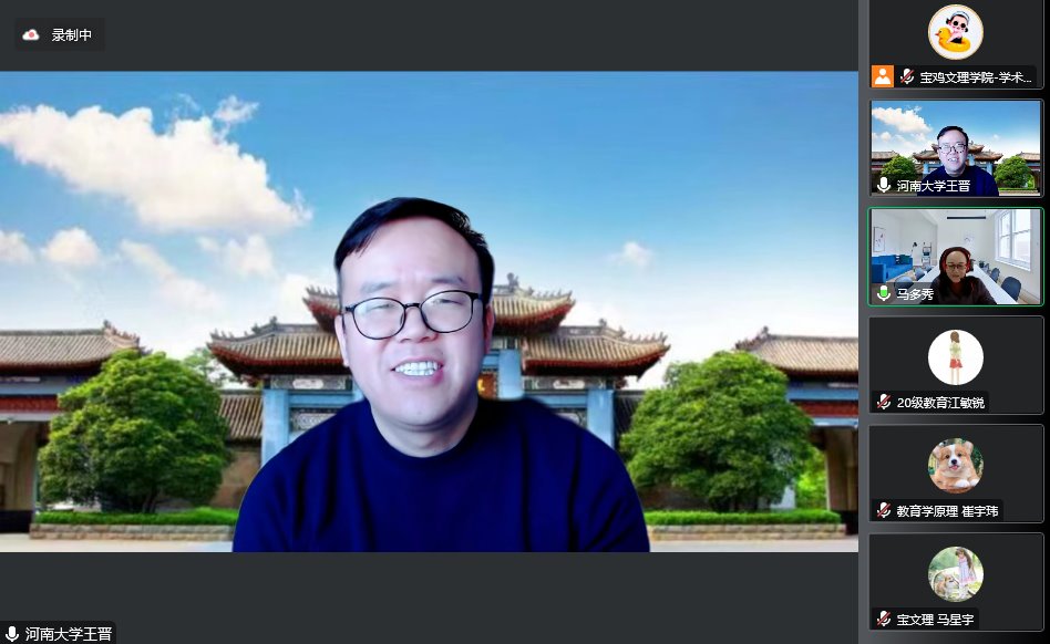 10月10日下午,河南大学教育学部王晋教授应邀在线上举行学术报告,报告题目为《单位和学校》。本次报告会由太阳成集团经理马多秀教授主持,太阳成集团教师、研究生共计100 余人参加了本次报告会。
