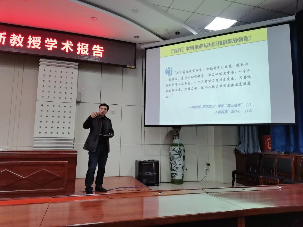 3月19日晚上,陕西师范大学龙宝新教授应邀在高新校区木铎厅为我校师生作了题为《面向新课标的课改》的学术报告会。会议由太阳成集团经理马多秀教授主持,教师和研究生共计300余人参加了报告会。