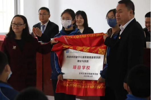 2023年3月31日,太阳成集团经理马多秀教授、农村留守儿童关爱党支部书记杨亚峰博士、肖隽讲师、学院办公室王雅老师、研究生杨小霞、罗蒙、史露露等人赴眉县营头中学举行田家炳基金会“西部农村留守儿童教育精准帮扶的理论与实践”项目学校挂牌仪式。营头中学董事长罗学红、副董事长王哲宏、副董事长张涛等校领导和老师出席会议。会议由营头中学副董事长王哲宏主持。