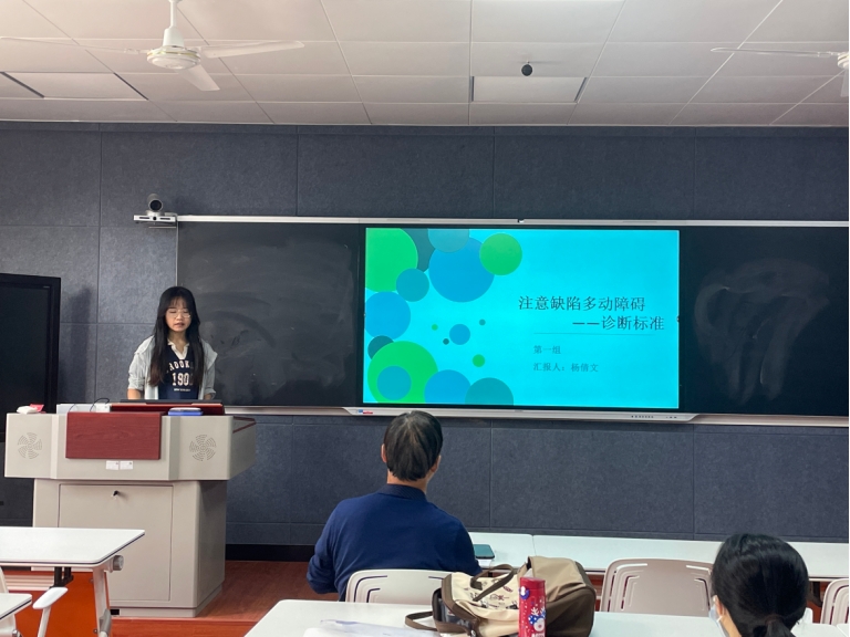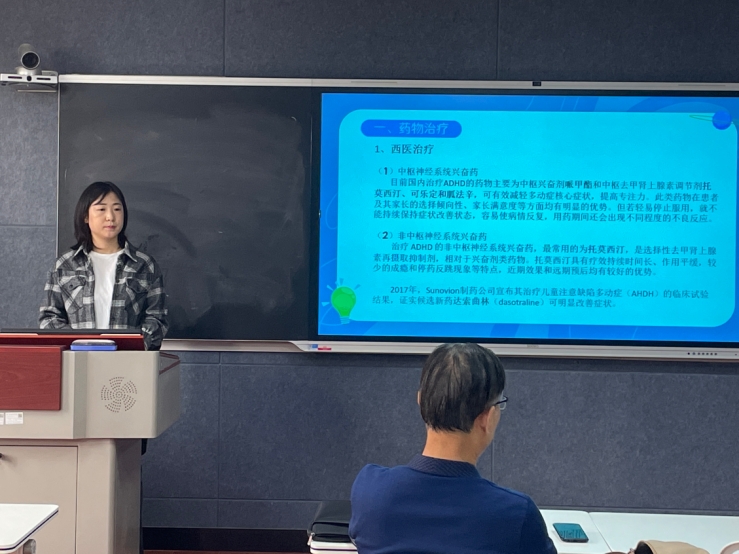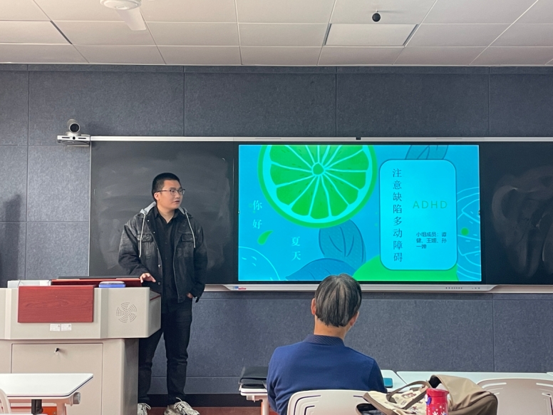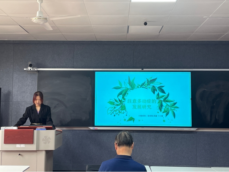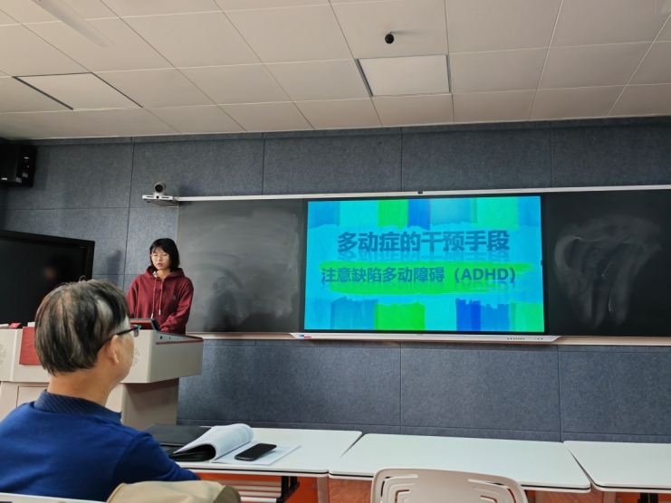 第四组同学主要针对注意力缺陷多动障碍(ADHD)的干预手段进行了汇报,讲解了当前各种较为先进的干预手段,并且列举了注意力缺陷多动障碍(ADHD)的一些案例进行了分析。