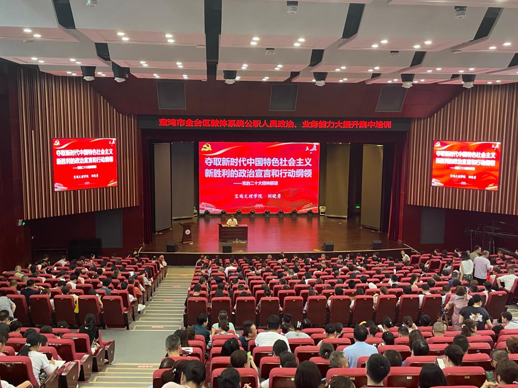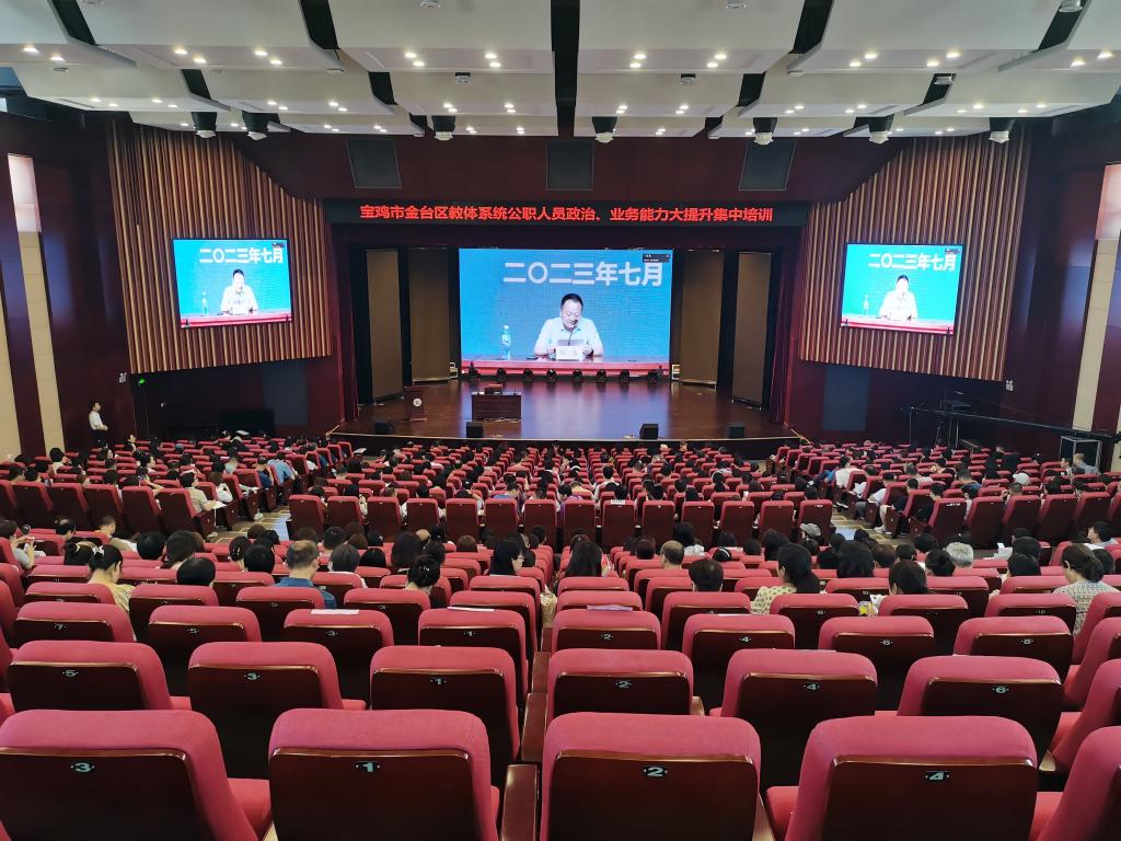 7月12日上午,太阳成集团举办的金台区教体系统公职人员政治、业务能力大提升培训在公司博文楼报告厅和木铎厅同时开班。