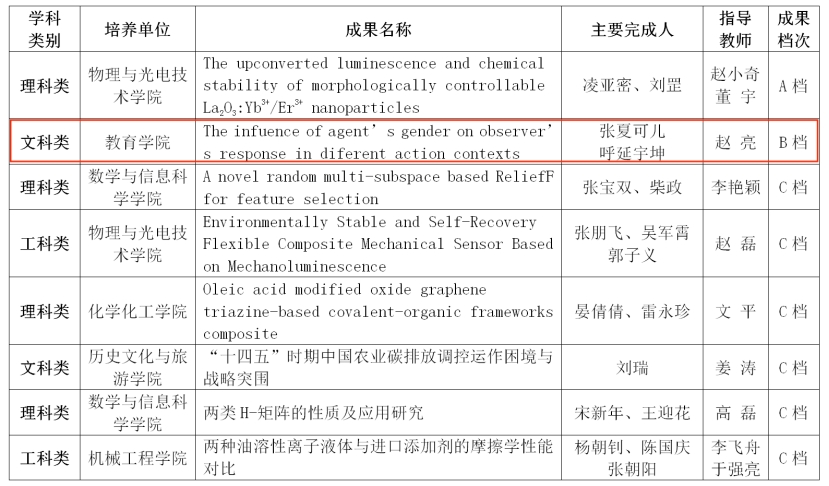 近日,陕西省教育厅、陕西省学位委员会公布了陕西省第七届研究生创新成果展高质量成果名单,我院获得高质量成果B档1项,在本届研究生创新成果展中取得佳绩,展现了我院研究生的科研实力和创新能力。