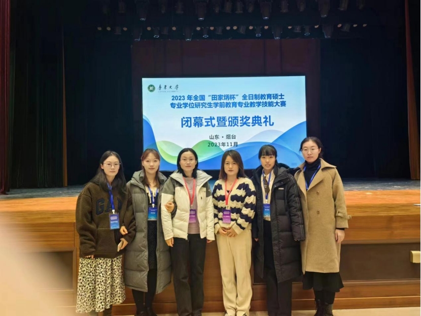 11月10日-12日,由全国教育硕士专业学位研究生教育指导委员会主办、鲁东大学承办的2023年全国“田家炳杯”全日制教育硕士专业学位研究生学前教育专业教学技能大赛决赛隆重举行。来自全国78所高校的353名选手报名参赛,经过初赛评审,最终来自67所高校的165名选手进入决赛。公司学前教育2021级研究生荆雪琴、周晗在决赛中获得优秀奖。