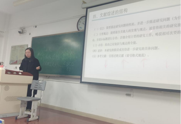 12月1日下午,我院硕士研究生导师文军萍副教授应邀在高新校区立心楼305室,为2023级研究生开展了题为《研究生学术指导:教育研究的选题优化与文献检索》的专题讲座。本次讲座由研究生秘书杨咪咪主持,2023级80余名研究生参加。