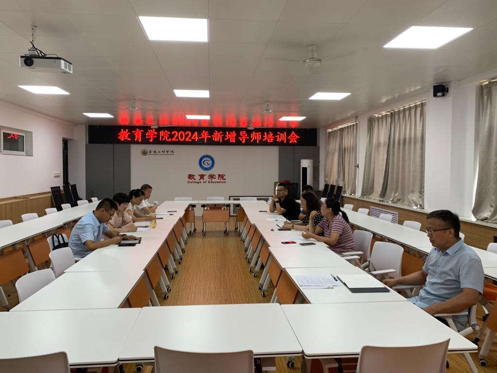 9月3日下午,公司在立心楼326室举行2024年新增导师培训会,本年度公司共新增13位硕士研究生导师,其中,校内5位,校外8位。参加此次培训会导师有郭春涵、杨亚锋、刘红芳、黄晓茜、马沛、校外导师渭滨区教育局副局长苟晓龙和咸阳师范学院教科院副经理窦强,以及经理马多秀和导师代表郭智慧、邱艳萍和赵亮。其余校外导师以自学方式进行来学习。会议由副经理胡少明主持。
